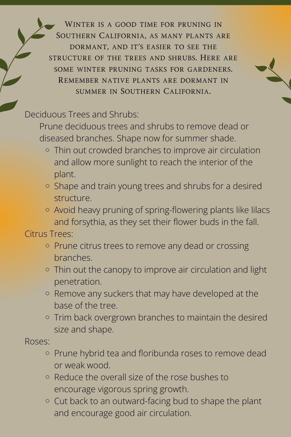 Winter garden to do list for Southern California. Dec 28 Written By Chelsea Wesley PrunersGet some nice sharp hand pruners here, and get started. Fiskars Hand Pruners are my Fav *We may earn a small commission from affiliate links Chelsea Wesley