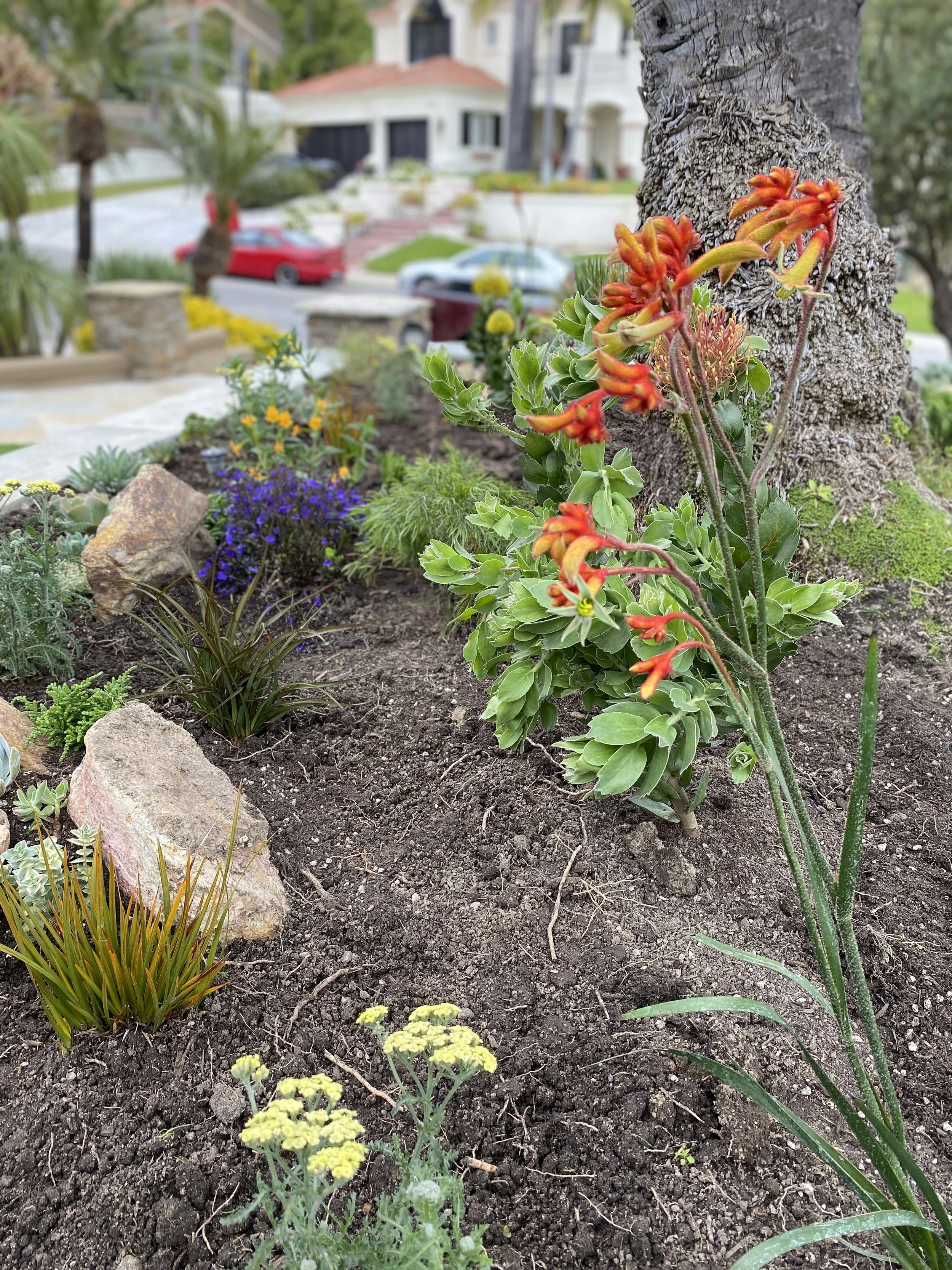 Low-water lawn & Tuscan style garden