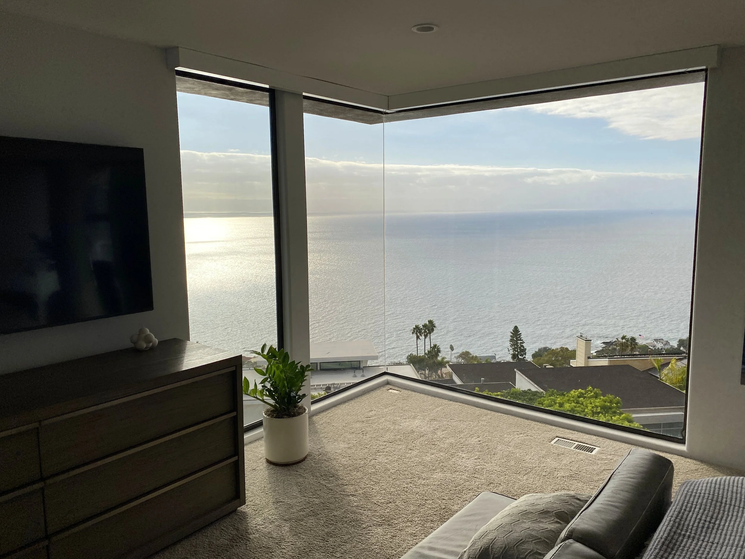 Each specimen plant was chosen to accent the view. A color palette of rust, purple, blue, and grey compliments the architecture.